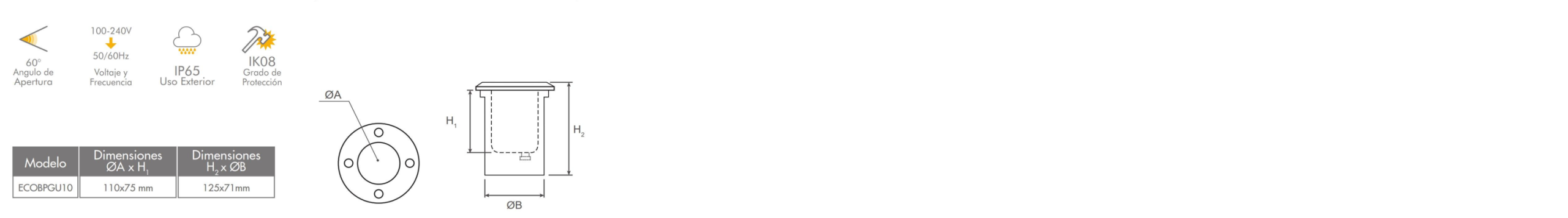 Bala de piso Glow Lights® GU10, son ideales para diferentes tipos de aplicaciones a la intemperie (donde hay humedad, lluvia y polvo), iluminación de paisajes, iluminación arquitectónica, jardines, parques, fachadas, áreas de deporte y parqueaderos.